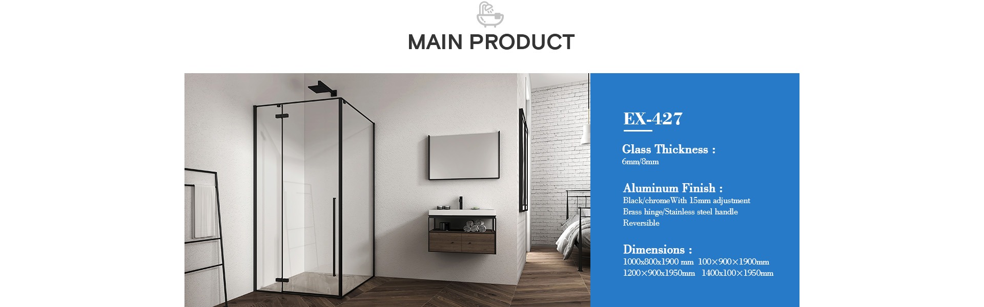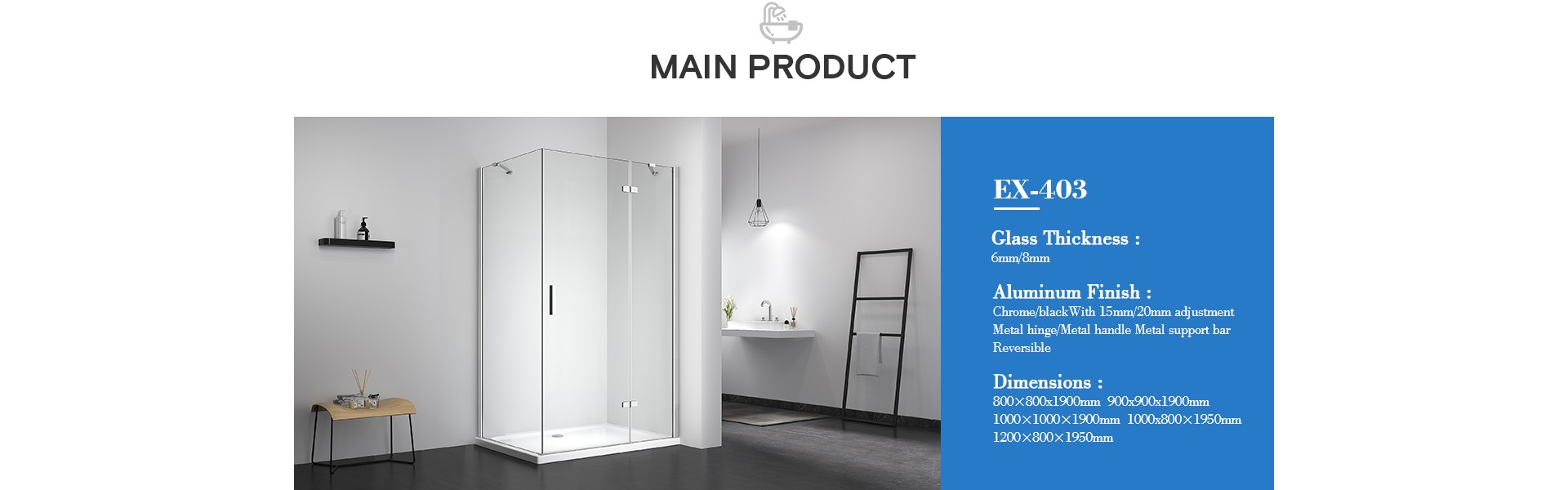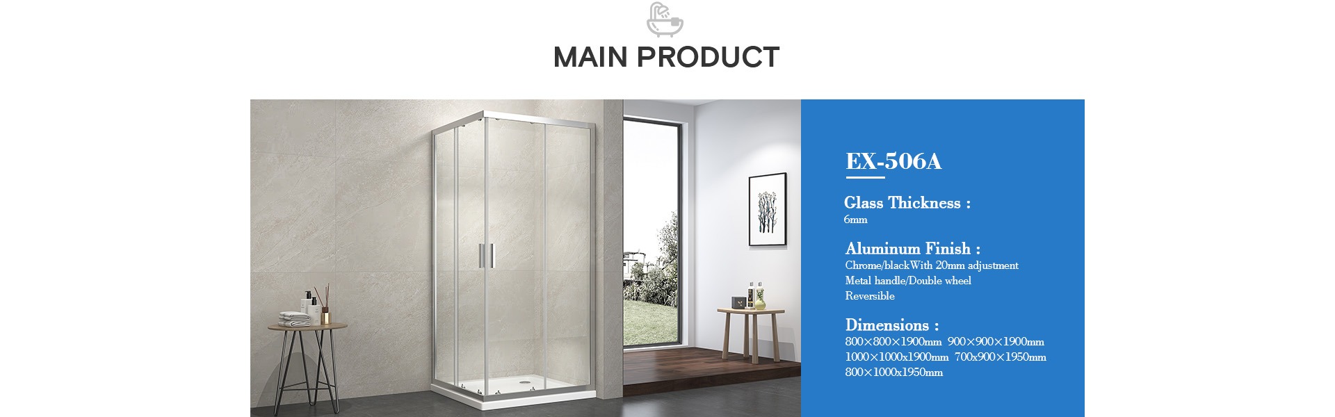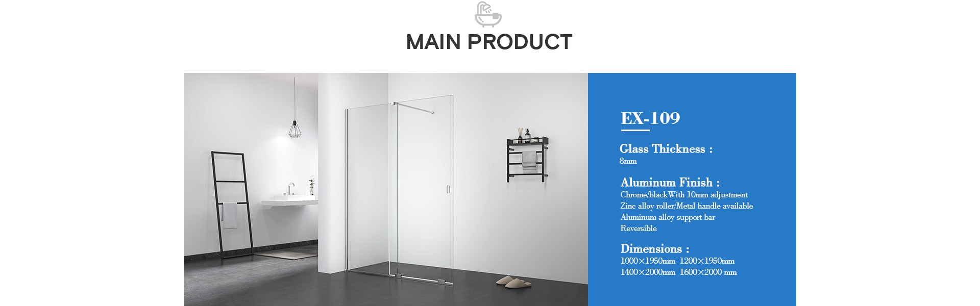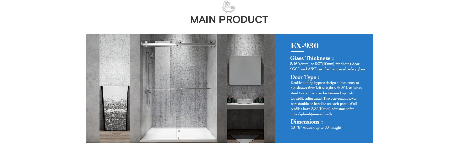 Elegant Design SUS 304 Handle Frameless Shower Doors Sliding Bathroom EX-823