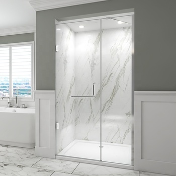 Marché américain Porte de douche à charnière en verre trempé sans cadre